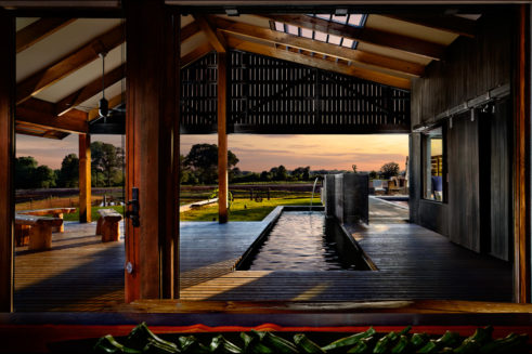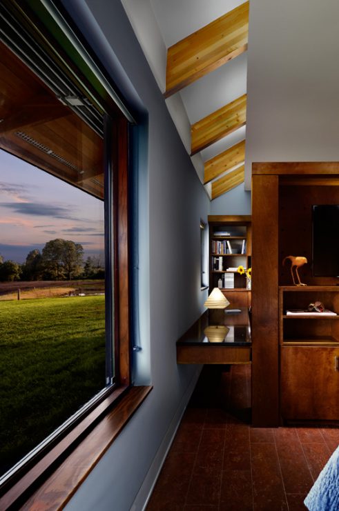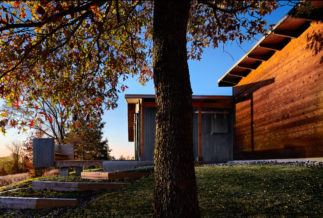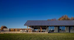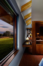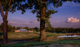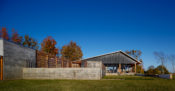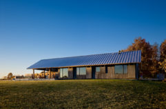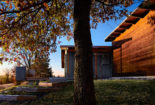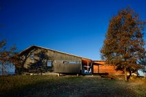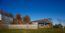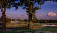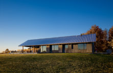 Old Briar is a home in rural west Tennessee. The clients are a couple who, for career reasons, have lived in Chicago for the last twenty-five years. They are now retired and intend to spend much of each year in Lauderdale County, where they grew up. They envision this house being an anchor for their family and, particularly, a magnet for their grandchildren and generations yet to come. The site is 80 acres of productive agricultural land that is rotated between soybeans, winter wheat, and cotton. The clients are conscious of being stewards of this land and have already worked with the state department of natural resources to mitigate topsoil erosion; a significant problem in this part of the Lower Mississippi Basin. Accordingly, the house is placed fairly close to the road and avoids the steeper portions of the site. Nestled next to an existing hedgerow it engages two ponds that are important locations for gatherings of the couple’s family and friends. The house is rotated to mediate between optimal solar orientation and distant views.The clients wish for the home to not be ostentatious. In response, the form of the house is dominated by an asymmetrical gable roof that allows the living spaces to open up to vistas of the farm and provides an ideal slope for solar hot water panels on the south while, on the north, sloping down to present a humble face to the road. A wooden screen stretching along the north elevation provides privacy for the small pool and presents the image of a utilitarian agricultural structure upon approach.